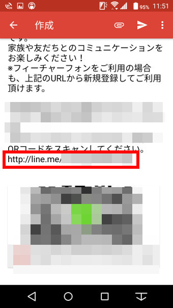 ここで自動作成される招待メールをそのまま送っても問題ないですが、必要なのは一番下にある専用のURL「http://line.me/*******」なので、このURLさえ発行してしまえば、以降使いまわせます。
